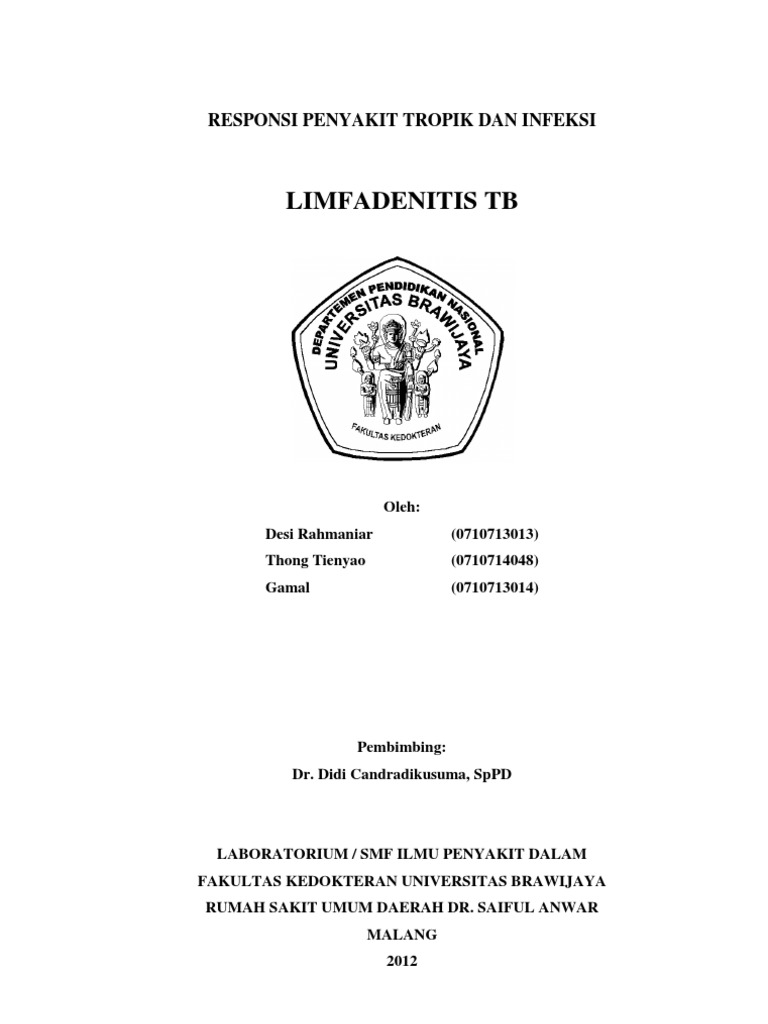 Bolest je upala limfnih čvorova - čuvara ljudskog tijela, koji u njega ne dopuštaju štetne bakterije. Pogosto spremlja raznolike okužbe z bakterijami, virusi, glivami in paraziti. Norman Djamaluddin, SpPD K- HOMSub bagian Hematologi Onkologi MedikBagian Penyakit Dalam RSMH PalembangPendekatan Diagnostik.