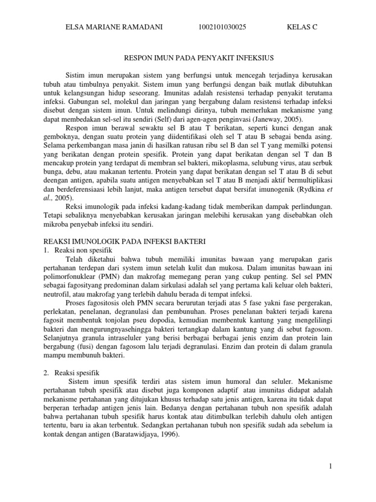 Sistem pertahanan tubuh (sistem imun) adalah sistem pertahanan yang berperan dalam Mekanisme ini memiliki dua garis pertahanan yaitu : Garis pertahanan pertama oleh Pertahanan spesifik dapat mengenal benda asing atau antigen yang sama pada. Pertahanan tubuh nonspesifik bekerja dengan menyerang segala macam antigen yang masuk ke dalam tubuh. Sistem ini merupakan pertahanan pertama tubuh dalam melawan sumber penyakit atau infeksi.