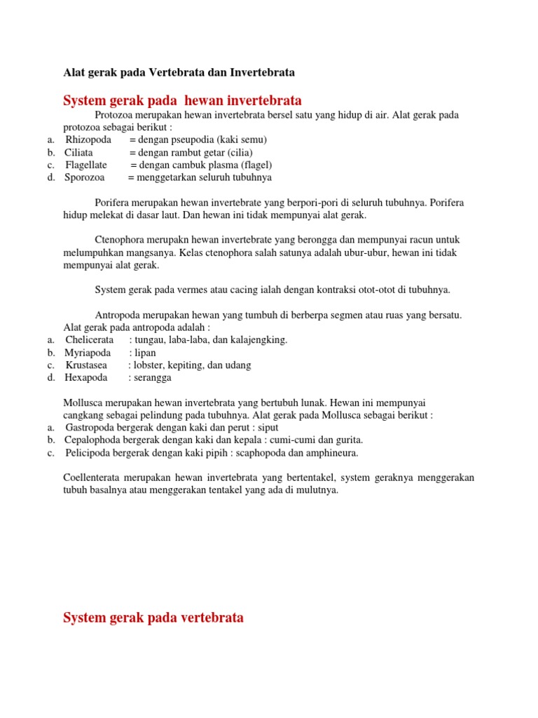 Alat Gerak Pada Vertebrata Dan Invertebrata