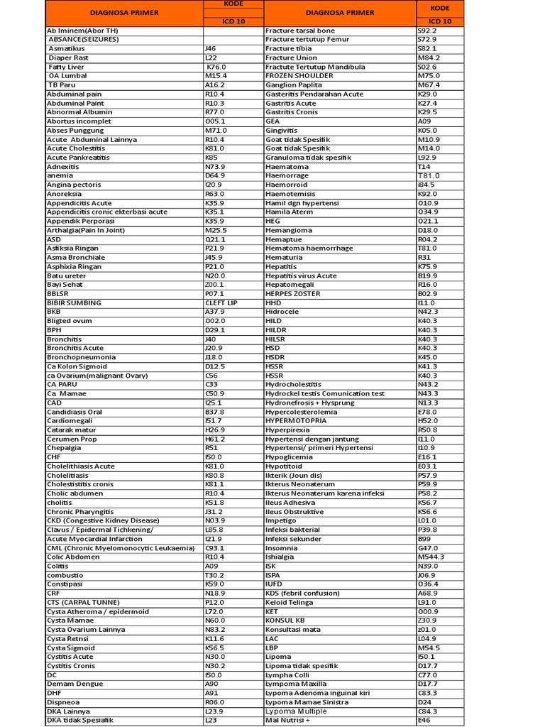 List kode di bawah ini masih bercampur antara diagnosis dalam bahasa Inggris dan Indonesia.