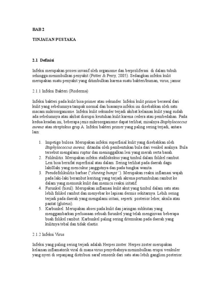 Infeksi Kulit. Virus ini menyebabkan munculnya bintik atau ruam melepuh kemerahan yang terkadang berisi nanah dan. Infeksi kulit adalah suatu gangguan pada kulit yang dapat disebabkan oleh bakteri, virus, jamur, atau parasit.