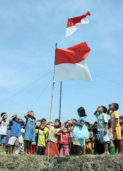Jagat raya luas membentang Berhiaskan cahaya terang Lebih terang melebihi bintang. "Indonesia Raya" (English: Great Indonesia) is the national anthem of Indonesia.
