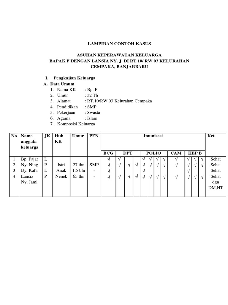 Lampiran Contoh Kasus Asuhan Keperawatan Keluarga Bapak F ...