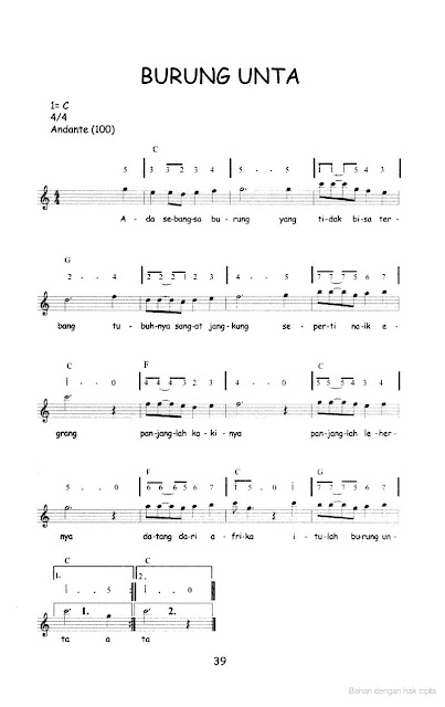 20 Koleksi Not Angka Lagu Anak - Anak | Not Angka Lagu