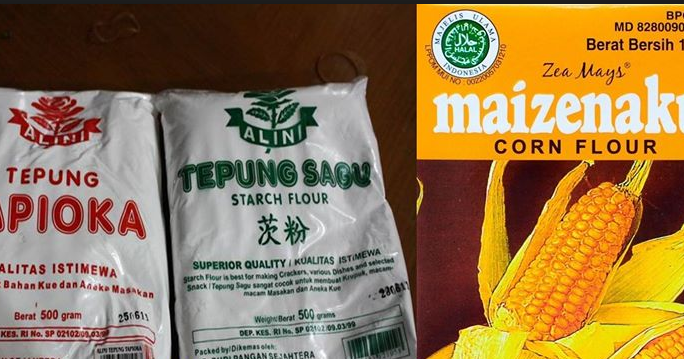 Tepung Tapioka Dan Tepung Maizena. Tepung Maizena: tepung ini dibuat dari jagung yang dihaluskan. berbeda dengan tepung lainnya, Maizena lebih mengarah ke tepung pelengkap. hal ini dikarenakan tepung maizena biasanya hanya digunakan sebagai pengental, seperti misalnya pada kuah capcay, sup dan teriyaki. penggunaan. Ketika disentuh pun ketiganya punya tekstur yang hampir sama, yaitu agak kesat.