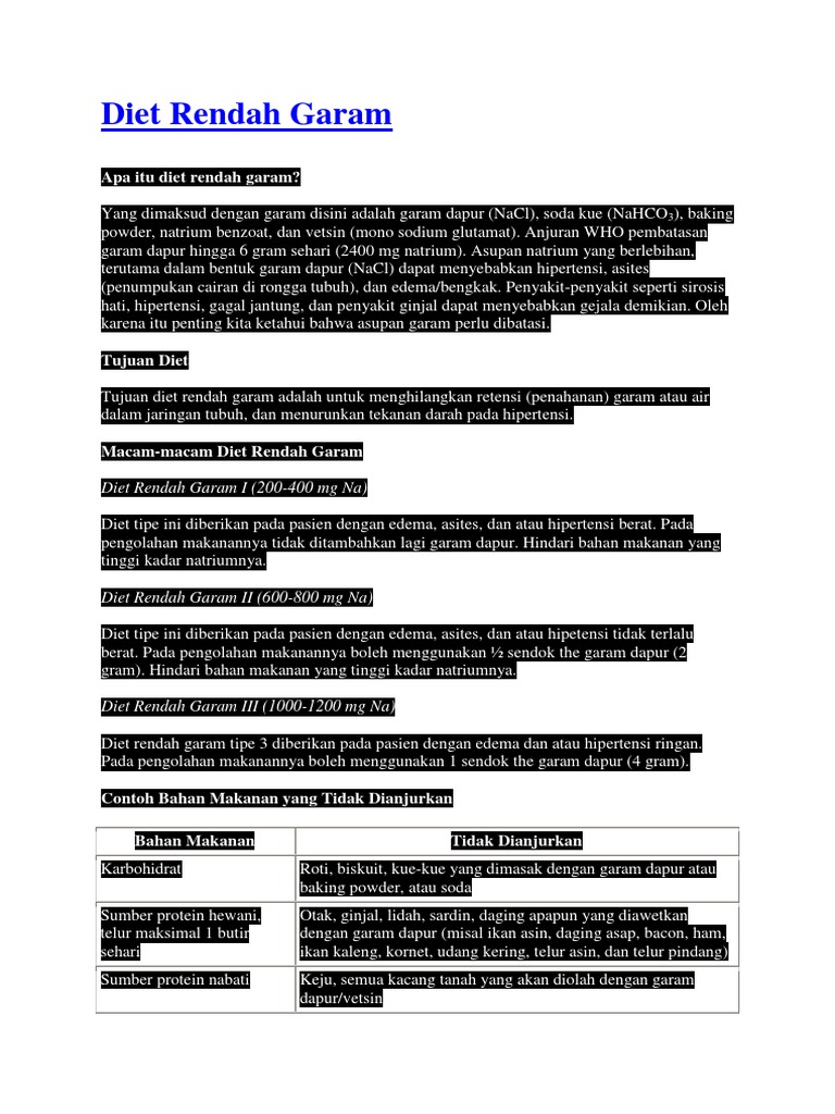 Diet Rendah Garam Pdf. Namun, kekurangan garam juga Beragam Tips Diet Rendah Garam. Dengan menjalankan diet rendah garam, Anda bisa mengurangi risiko terjadinya berbagai penyakit tersebut.