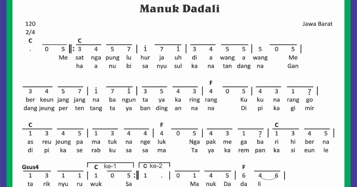 Not Angka Lagu Manuk Dadali - SEKITAR MUSIK