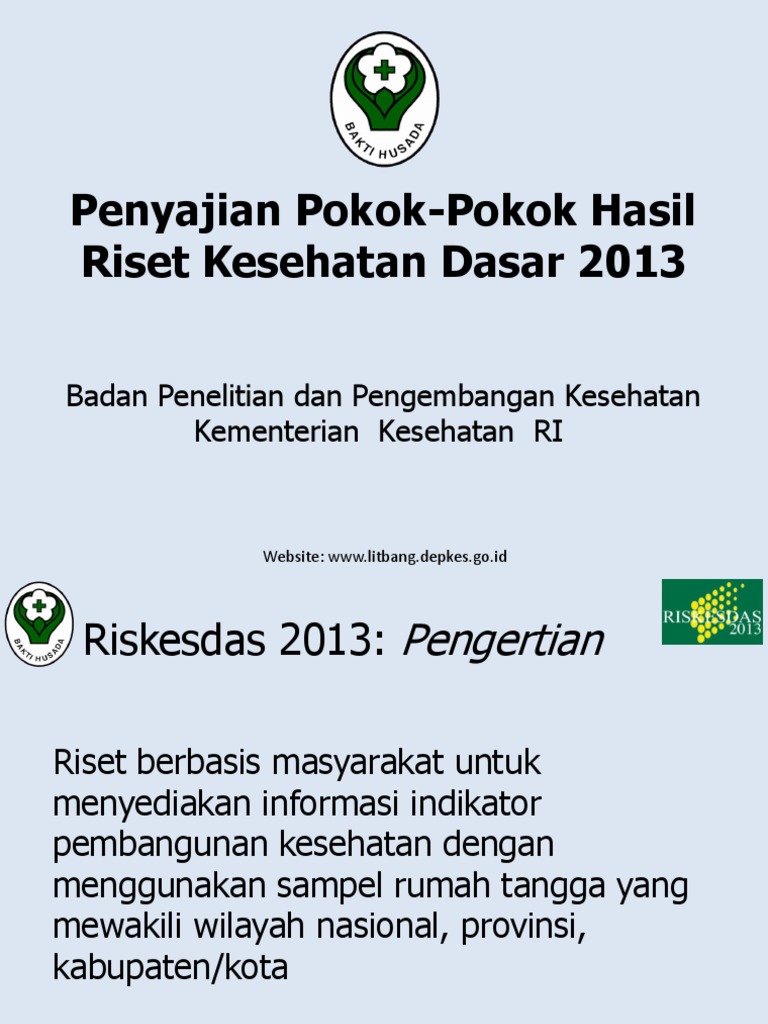 Riskesdas 2013. Jadwal RiskesdasMasalah kes per kab/kotaIPKM peringkat kab/kotaIPKM. Result: Jamsostek has the highest proportion of participants who consume tobacco every day as many as.