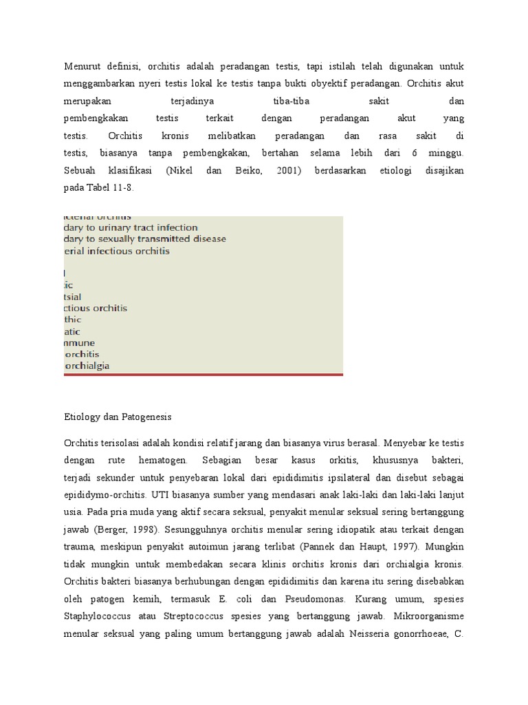 Orchitis Adalah. Orchitis adalah kondisi di mana testis mengalami peradangan (inflamasi). Orkitis atau Orchitis adalah peradangan pada salah satu atau kedua testis, paling sering dikaitkan dengan virus yang menyebabkan gondok.