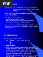 Proses ini secara sadar ataupun tidak seringkali seseorang jalankan dalam keseharian. Definisi : (dénitrifikasi) proses penyingkiran nitrat atau nitrogen, mis penyingkirannya drpd tanih oleh tumbuh-tumbuhan. (Kamus Dewan Edisi Keempat). Proses ini terjadi di dalam tanah dengan bantuan bakteri denitrifikasi seperti Pseudomonas, Thibacillus,dan Micrococcus.