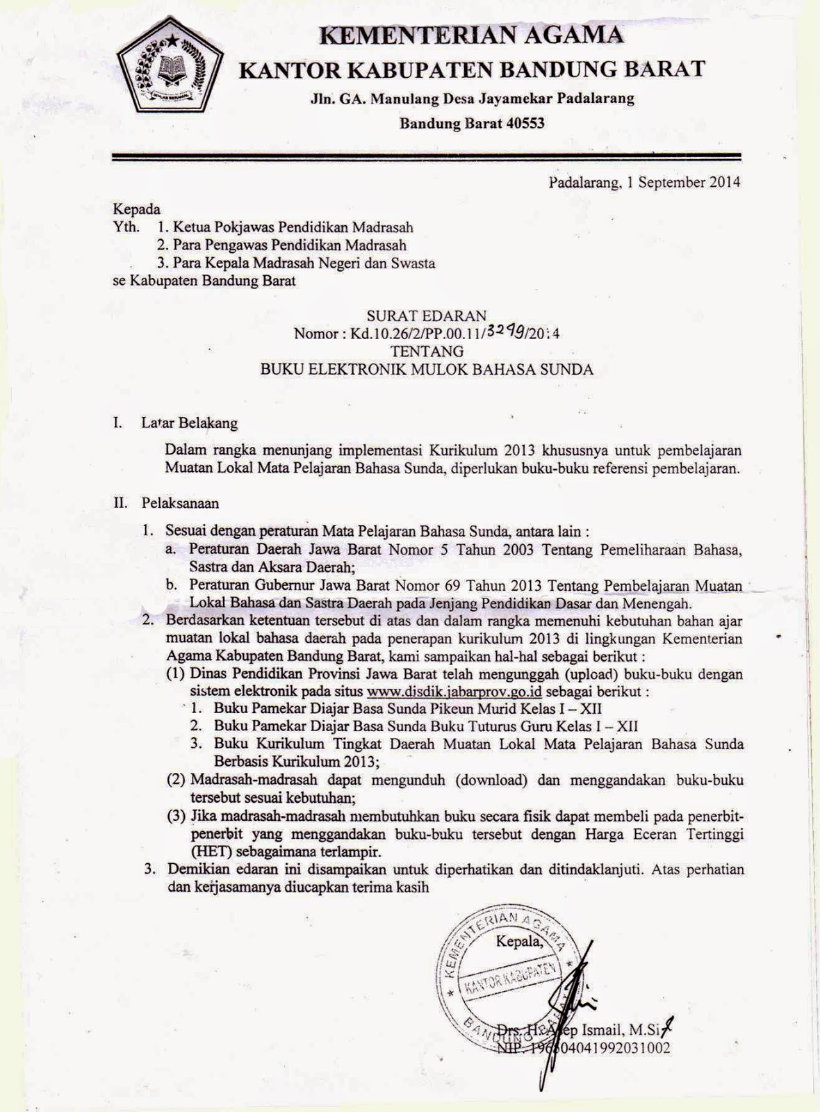 POKJAWAS MADRASAH KEMENAG BANDUNG BARAT: SURAT EDARAN BUKU ...